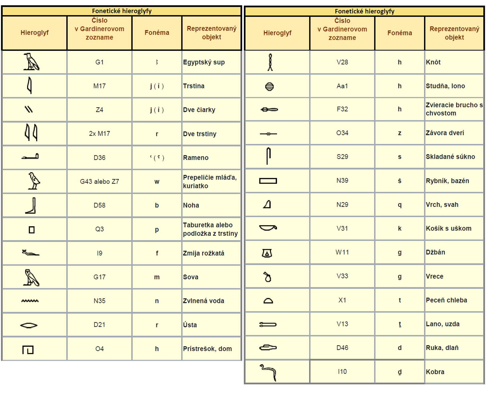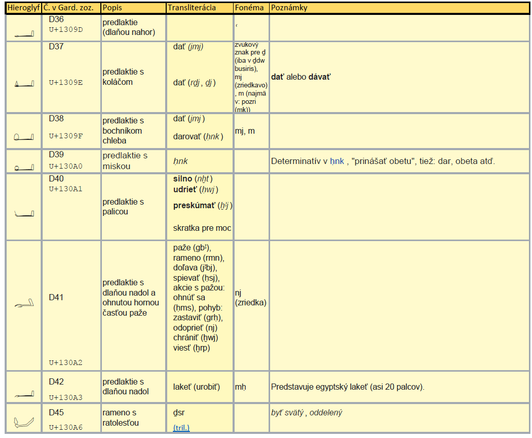 Medzi týmto úzkym výberom egyptských hieroglyfov nájdeme tiež dlaň D46, symbol stojatej vody N39, symbol dynamickej vody N35. Nájdeme tu košík s uškom V31 a tiež hrniec W11. Ústa D21, ktoré ešte nie sú z profilu. Dom O4, ktorý je ešte v horizontálnom reze, v ktorom je ťažké zobraziť okno. A ďalšie dôležité hieroglyfy, o ktorých by som s nadšením rozprával, ale vy by ste ešte dlho zostávali v pochybnostiach, či je to pravda. Preto nebudem pokračovať v rozprávaní týmto smerom, ale začnem rozväzovať klbko z celkom iného konca.