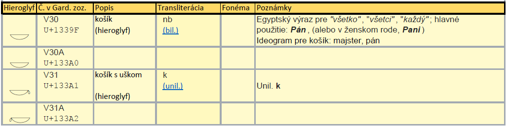 kvetu ale aj košík. Pozrime sa teda na hieroglyfy košíka a ich