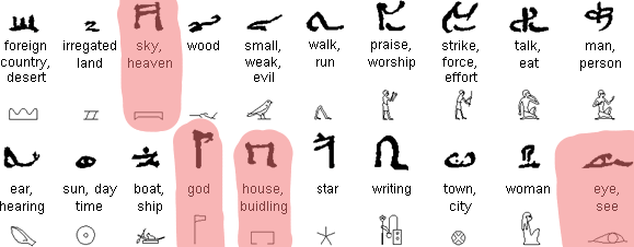 Teda v tej zúfalej situácii, kedy som o všetkom pochyboval, kedy mi už nepomáhali ani moje poznatky z technického kreslenia, kedy moja predstavivosť generovala hocičo a nič, kedy žiadne proto a paleo-písma nedokázali uspokojiť moju prísnosť, vtedy som si povedal, že preskúmam ešte egyptské hieroglyfické písmo. Treba povedať, že v tom čase som poznal Champollionov kryptoanalytický útok na hieroglyfy, ktorý veľmi pekne popisuje Simon Singh vo svojej knihe Kniha kódů a šifer. Najväčší Champollionov objav spočíva v tom, že hieroglyfické písmo je z veľkej časti fonetické. Teda i keď je všetkých hieroglyfov viac ako 800, nie všetky sú rovnako často používané. Tie, ktorým sú priradené fonémy sú závislé od toho, koľko rôznych foném dokáže človek pri hovorovej reči pomocou hlasiviek, jazyka, pier a ústnej dutiny vytvoriť, a tých je naozaj veľmi málo; tak do 30 hieroglyfov. Preto som vedel, že ak hebrejské písmo nejako súvisí s egyptským, potom určite nájdem nejaké dôležité zhody práve medzi týmito hieroglyfmi.